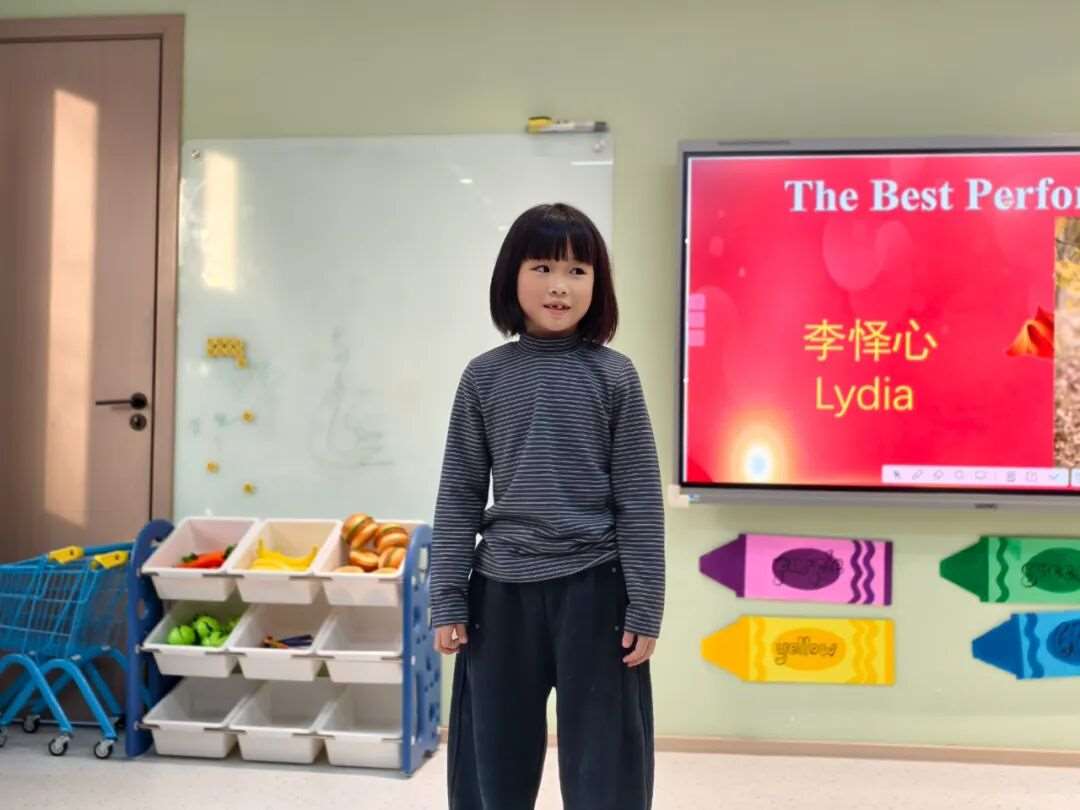 小明星们个个自信满满地站上舞台:标准流利的英文发音、活力四射的英文歌曲演唱、……每一个展示都赢得了现场阵阵掌声,也让老师和家长们看到了孩子们在学习之外的闪光点。