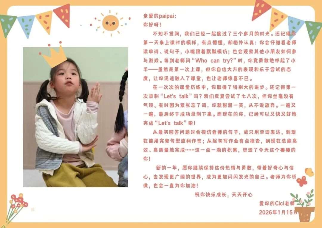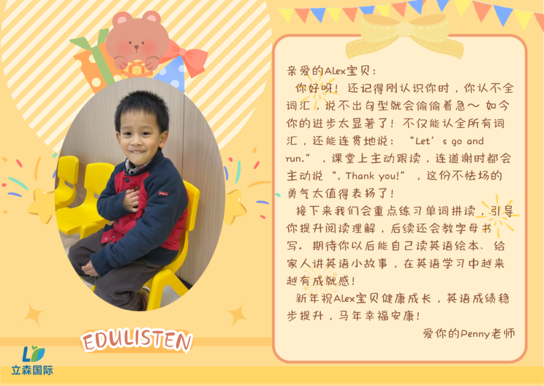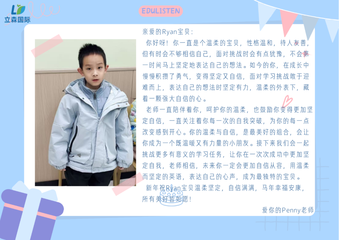 一句寄语,一份期盼;一份陪伴,一路成长。感谢立森国际每一位老师的用心付出,用文字传递温暖,用陪伴守护成长。